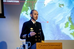 Sjef sjø i Sjøforsvaret, Rune Andersen oppdaterte tilhørerne på dagens trusselsituasjon. Foto: Skodvin / NHH